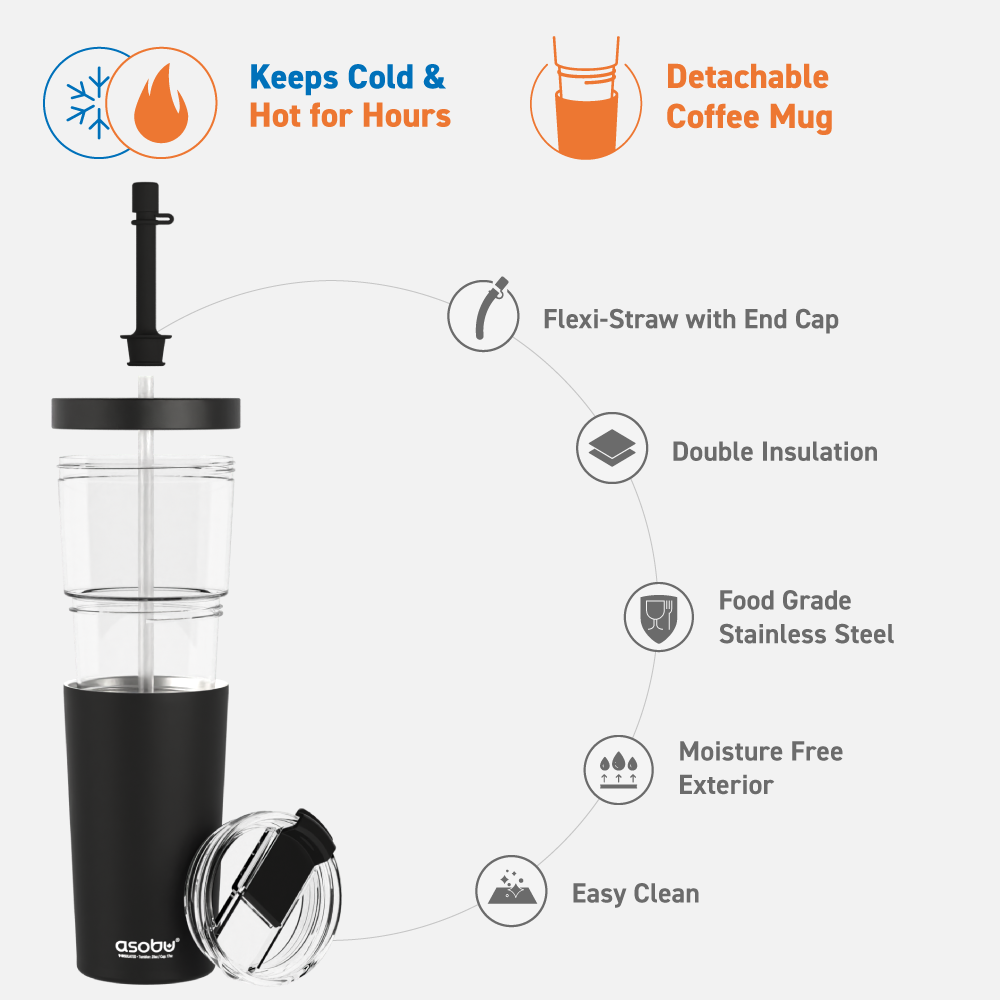 The Marina is more than just a tumbler; it’s a versatile 2-in-1 drinkware solution. Combining a spill-proof tumbler with a detachable insulated coffee mug, it’s designed for convenience and performance wherever life takes you. It comes with a flexible, silicon straw with a secure end cap to ensures no messy accidents; and dual lids that can be swapped for cold and hot drinks. Best of all, it is double insulated to keep drinks hot or cold for hours, so you can savor every sip.